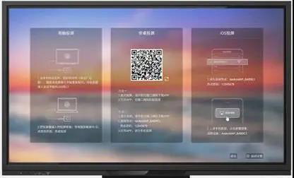 畫面顯示PC、iOS、安卓設(shè)備的無線投屏方式,提示用戶操作。