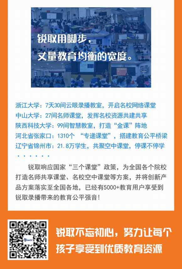銳取(REACH),業(yè)內(nèi)領先的多媒體錄播產(chǎn)品和技術服務提供商,致力于全方位滿足用戶在教育、會議、培訓、醫(yī)療等各種場景下多媒體信息的傳輸、記錄與分享的需求。截止2012年12月,銳取產(chǎn)品已在全球60多個國家和地區(qū)成功應用。
