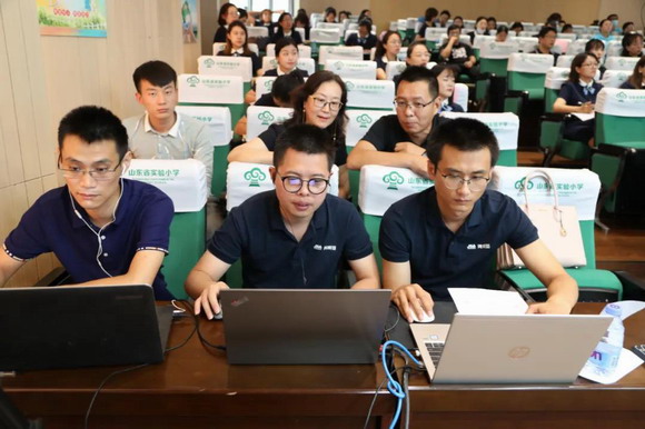 隨后,山東省教科院語文教研員李家棟以《提升學科專業素養 提高漢語拼音教學質量》為題作專家報告。在李家棟帶領下,兩個學校的老師們組成研究團隊,依托奧威亞“云+端”,打破常規教研束縛,將線上研討、同步課堂、專題講座等形式有機結合,共同探討漢語拼音教學方法。