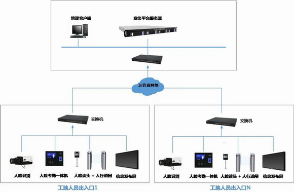 人員實(shí)名制管理系統(tǒng)主要由人員通道閘機(jī)、人臉識(shí)別機(jī)和中心管理平臺(tái)等設(shè)備組成,主要實(shí)現(xiàn)對(duì)施工人員的出入權(quán)限管理、員工考勤管理等功能。