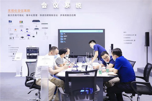 DANACOID傾心布置的300平米展臺,豪橫呈現2020年度全新技術解決方案:兩大系統(指揮中心&會議系統),四大品類(LED智慧會議屏,全系列分布式系統,人工智能會議系統,全雙工雙備份音頻系統)齊亮相,動靜結合,集中傳達了DANACOID的創新發展成果以及完備的全網絡化音視頻解決方案,吸引了現場參展人群關注。