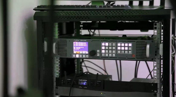 在使用這套系統時,教師一個人就能完成授課過程:教師在綠幕棚進行錄像,影像將會被傳輸到奧圖碼HQ Pro 1000影音處理器中,處理器會將課程需要的的背景畫面、PPT簡報、3D畫面甚至AR影像與教師講課的身影融合,呈現出更加的沉浸的教學效果,然后實時將畫面傳遞到學生的屏幕上。