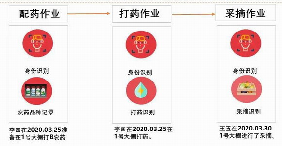 采摘時,后臺會根據上一次打藥時間自動推算出本次采摘時間是否已超過休藥期:若超過則視為符合安全用藥規定;若還在休藥期內,系統自動發出違規采收報警提醒,通知農企負責人及監管部門予以重視。