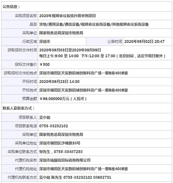 采購(gòu)項(xiàng)目名稱: 2020年視頻會(huì)議系統(tǒng)升級(jí)采購(gòu)項(xiàng)目