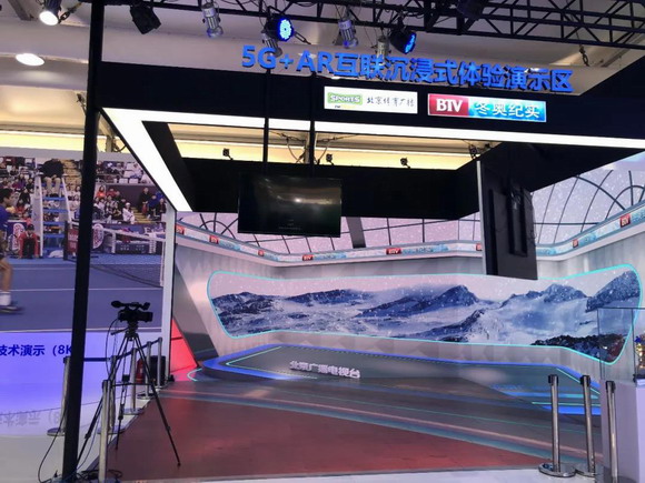 位于北京電視臺展位的5G+AR互聯沉浸式體驗演示區,采用利亞德旗下德火科技的AR沉浸式全景仿真系統,以獨創的多屏三維縫合技術為基礎,結合三維實時PBR渲染、紅外動作捕捉定位、虛擬植入等技術,在40㎡+LED空間內展現出無限可能。憑借其獨特的技術創新和技術難度,該產品曾經榮獲2018年度“國家廣播影視科技創新獎”。