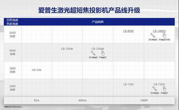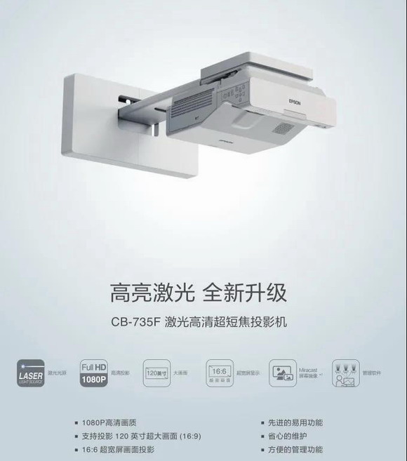 CB-735Fi系列共包含5款新品,均采用全新的激光光源,至此愛普生教育投影超短焦產品線已全線升級激光光源!