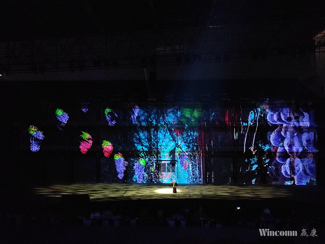為了讓表演更具渲染力,分別在主舞臺兩側的2個舞臺演出中采用了投影機來進行背景投影。
