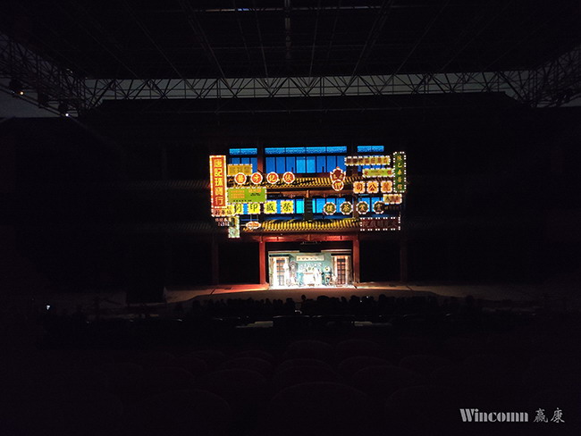 贏康科技主要參與了演出投影系統集成工作,為客家圍樓5個演出舞臺中的水舞臺、觀眾席兩側的圍樓舞臺、以及主舞臺升降裝置,共4個舞臺進行了投影投影系統設計、和為期近3個月的現場施工、調試等工作。