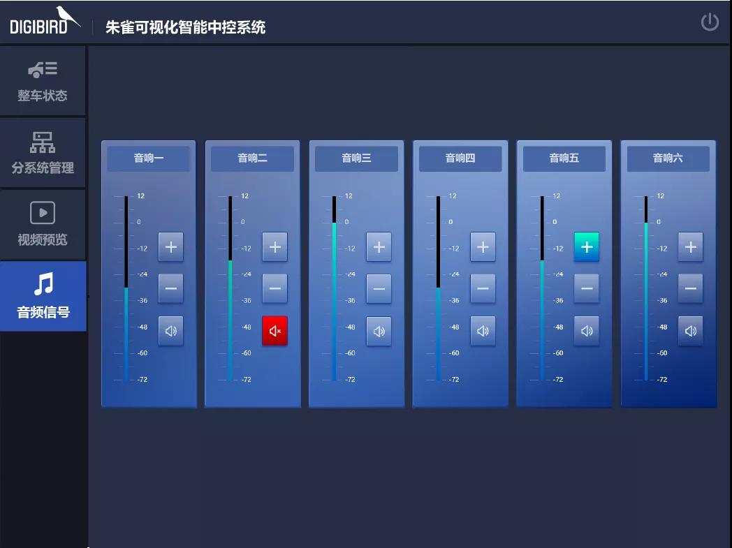 朱雀中控系統設計方案:采用可視化的人機交互理念,從大屏和信號的調度到音頻調節、環境控制、環境數據等均能達到實時可視化顯示,設備受控狀態同步反饋,達到所見即所得的應用體驗。
