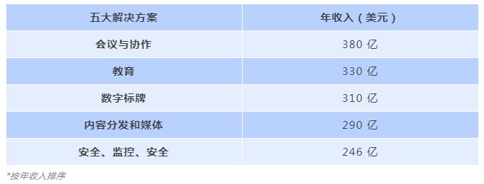 未來智慧建筑行業的機會將會是跨領域的,并且核心解決方案將跨越集成商已經服務的許多領域。下列為各領域解決方案及其市場年收入和復合年增長率: