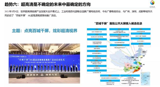 全球消費級市場,4K超高清將加速統(tǒng)治電視領(lǐng)域,出貨量占比將由2020年的57%增長到2025年的69%。8K電視在消費級市場依然小眾的原因在于價格昂貴,節(jié)目源匱乏。而在商用級市場,中國工信部與各地政府正在通過“百城千屏”的超高清視頻計劃來推動8K在全國的落地。