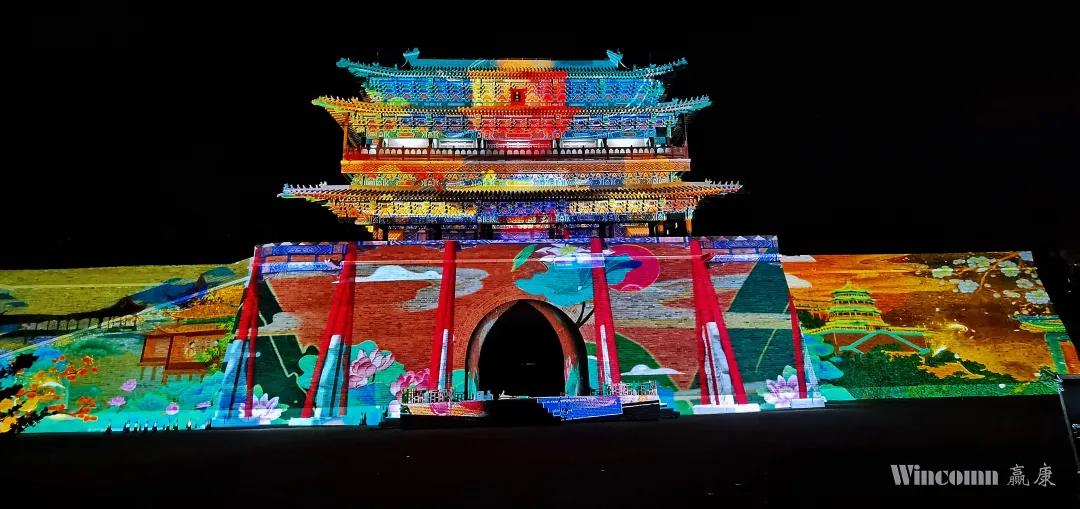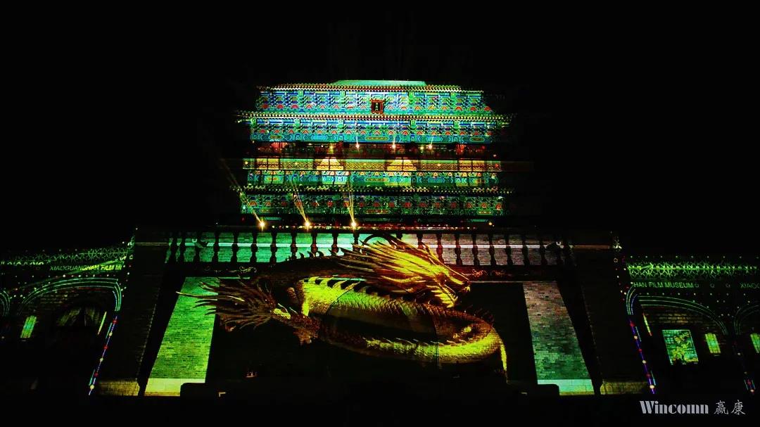 贏康負責了小鎮夜游的點睛項目——古城墻綜合光影秀。該光影秀既是電影小鎮夜游的亮點項目,也是小鎮游樂環節的高潮。