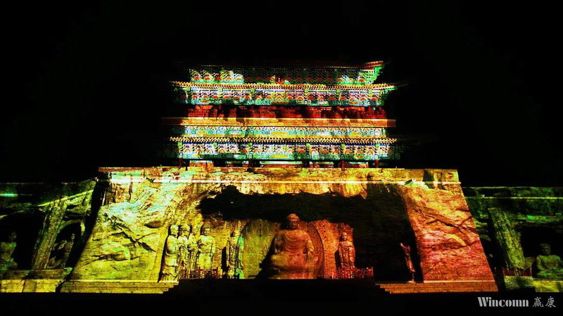 在投影設計方面,投影的尺寸為73.8米寬×29.5米高,贏康根據建筑特點和現場環境,進行了視角視場分析和專業細致的設計,讓影片在不同形狀、不同材質、不同底色的載體上和諧一致。