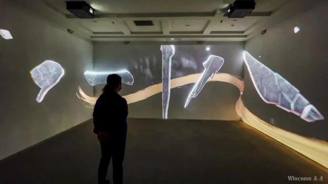 科影達(dá)投影機(jī)負(fù)責(zé)了展廳內(nèi)的全部投影工作,為三面墻面進(jìn)行了投影,打造了一個(gè)沉浸式空間,配合互動(dòng)裝置設(shè)備,賦予書法藝術(shù)新生命,實(shí)現(xiàn)游客與書法藝術(shù)的“親密”接觸。