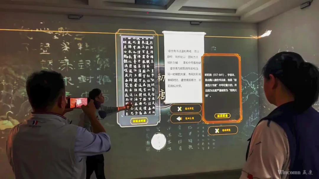 “筆鋒處•見大唐”數(shù)字化體驗(yàn)展廳,以碑林唐代名碑為切入點(diǎn),向游客展現(xiàn)書法藝術(shù)、名家風(fēng)采、名碑故事, 引導(dǎo)大眾更加了解書法藝術(shù),激發(fā)對(duì)于傳統(tǒng)文化的熱情。