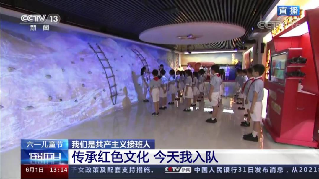 在鹽道街小學(xué)紅色教育體驗館中,一塊全息投影的攀巖墻下,小小少先隊員們在鄭重地宣誓。
