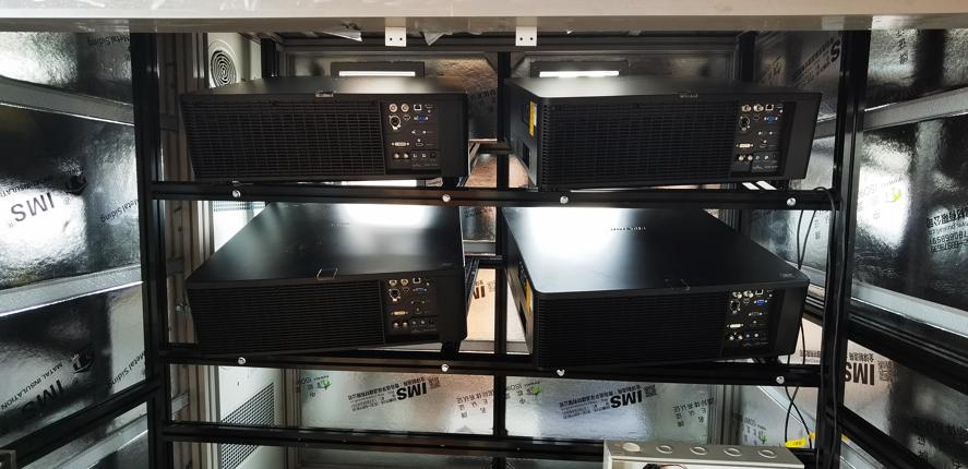 科視D20WU-HS 和 D13WU2-HS 投影機安裝在俯瞰古城樓的放映室中,可以展示一系列 74 米寬、30 米高的視覺效果。贏康科技進行了視角視場分析,以確定投影畫布的建筑特征,確保影片在不同形狀、不同材質、不同底色的載體上和諧一致。城門上方還安裝了紗幕投影方案,確保影像不會因城門周圍的空心空間而變形。