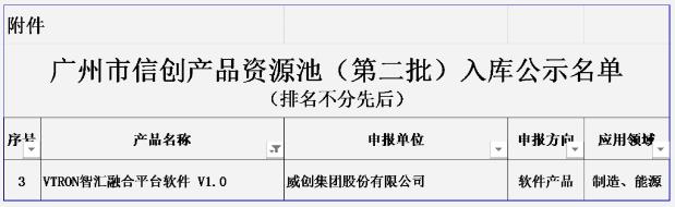 近日廣州市工業(yè)和信息化局對《廣州市工業(yè)和信息化局關于廣州市信息技術應用創(chuàng)新產品資源池(第二批)入庫名單》進行了公示,威創(chuàng)憑借VTRON智匯融合平臺V1.0成功入圍此次資源池名單。