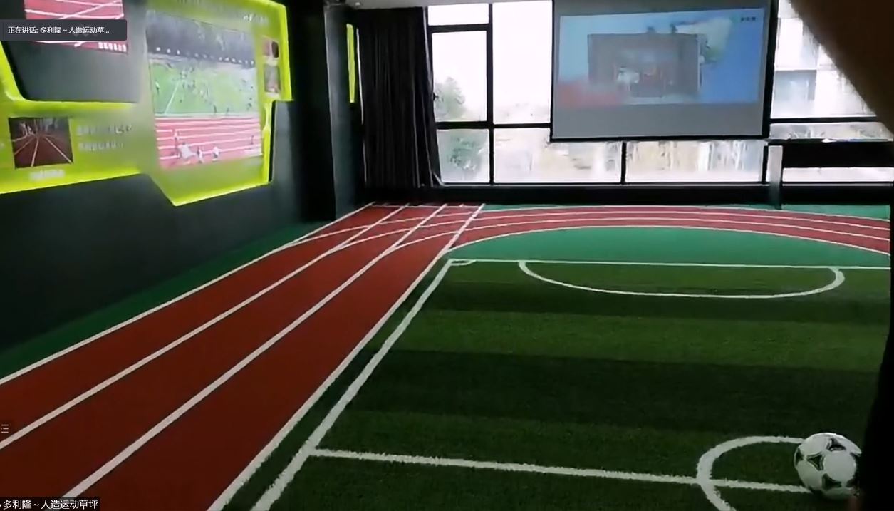 藍宇水處理袁總、泰山體育王總、上海多利隆賀總分別對泳池水處理、體育器材、非充砂類人造草坪展開了具體介紹,并通過線上帶領大家進行沉浸式體驗。同時上海茂度實業夏總、深圳和至項總、昭和洗凈陳總等也在會上做了展示分享。