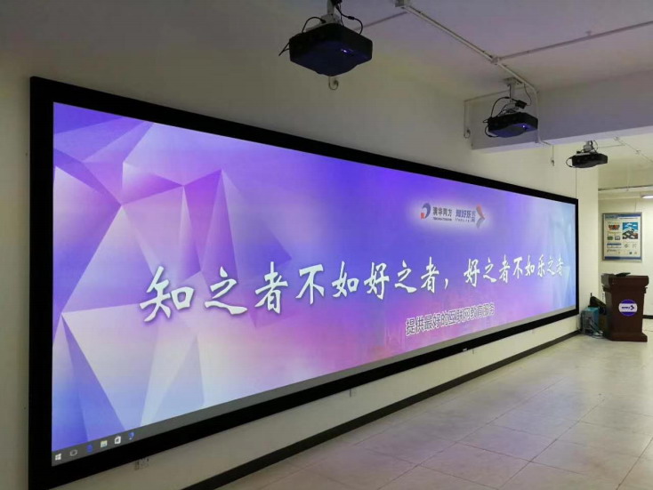 要建立這樣一套無縫拼接的寬屏投影系統(tǒng),至少需要完成以下的工作:對融合區(qū)進行羽化處理、校正處理等。因為融合區(qū)是 3 臺投影機共同作用的結(jié)果,其亮度是非融合部分的3倍,因此要進行羽化處理,使得融合區(qū)的亮度保持跟非融合區(qū)的亮度一致;同時,要對投影機進行精確的位置校正,否則一條直線在經(jīng)過融合區(qū)時會變得不直。邊緣融合大屏幕顯示系統(tǒng)可以精確細致地顯示每個精細而且微小的畫面,整套系統(tǒng)展現(xiàn)出來是整幅無縫的畫面,不論是光學拼縫還是物理拼縫,都不會存在, 帶給觀眾震撼的視覺沖擊和享受,讓一切數(shù)據(jù)完美再現(xiàn)!邊緣融合技術(shù)起初應(yīng)用于軍方模擬仿真系統(tǒng),隨著科技的不斷發(fā)展,成本的不斷下降,邊緣融合大屏幕系統(tǒng)已經(jīng)逐步的進入指控監(jiān)控中心、主題場館、仿真游戲等大屏幕顯示系統(tǒng)邊緣融合技術(shù)經(jīng)歷了三個發(fā)展階段:硬邊拼接、重疊拼接和邊緣融合拼接。