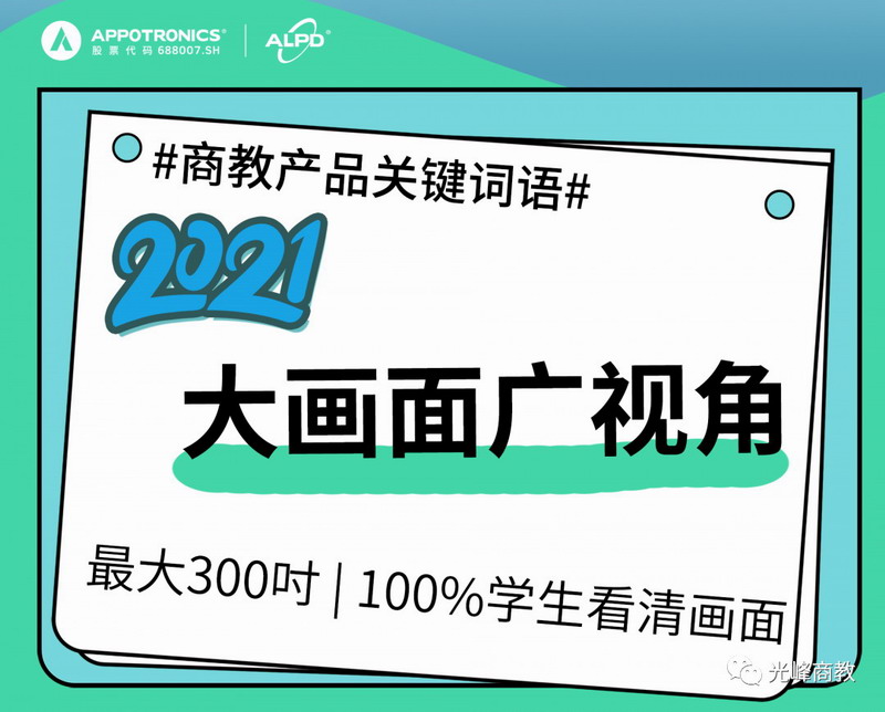 2021產品關鍵詞,是光峰商教產品升級迭代規劃藍圖,變局來臨之時,順應教育信息化發展趨勢,向著高清、高亮、大畫面廣視角、護眼發展,更大力度推動改革創新,以務實創新的心態、勇爭一流的決心,讓我們全力奔跑,2021未來可期!