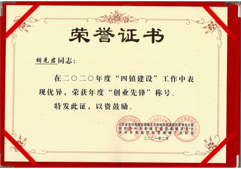 《2020年度蘇州優秀創新型企業》《2020年度四鎮建設創業先鋒》的先進稱號