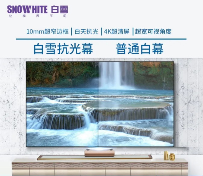 均勻性:屏幕的均勻性一定要好,否則,很難保證整幅畫面的亮度、均勻性。白雪專業金屬融合幕板材整張無縫、采用噴涂霧化工藝,成像層細膩均勻。墻體涂料是采用毛刷或顆粒滾筒滾動涂層,表層是涂料粉刷,成像表層會有平行 的劃痕或運行軌道,會嚴重影響投影畫面。兩者對圖像的還原影響很大。