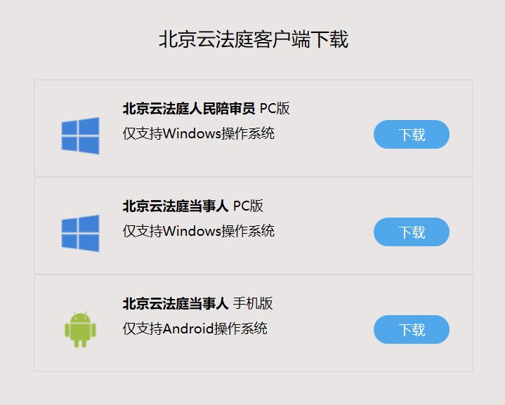 2、下載并安裝“北京云法庭”軟件(sspt.bjcourt.gov.cn/bcourt/onlineCourt/downloadYm)。
