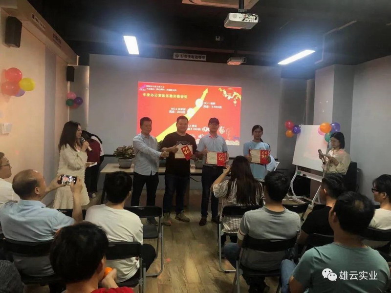 表彰大會開啟后,雄云實業總經理秦總首先發表了主題總結演講,在對員工進行了表揚肯定后,便開始給獲獎的員工頒獎。