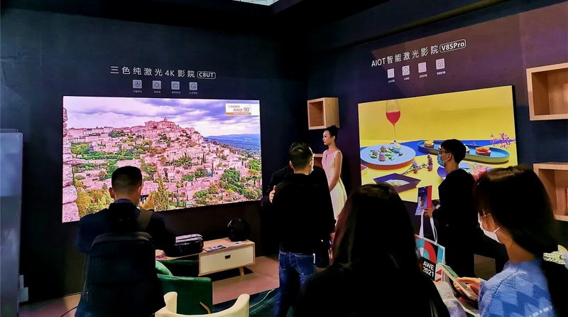 此次展會上,長虹激光向觀展者們展示了行業首款實現超短焦自動對焦的4K激光電視——V8SPro。這款產品是長虹家用激光影院中的高端產品,憑借著全球首發的超短焦自動對焦技術,在今年于線上舉辦的美國國際消費類電子產品展覽會(CES2021)上斬獲“激光顯示技術創新金獎”。