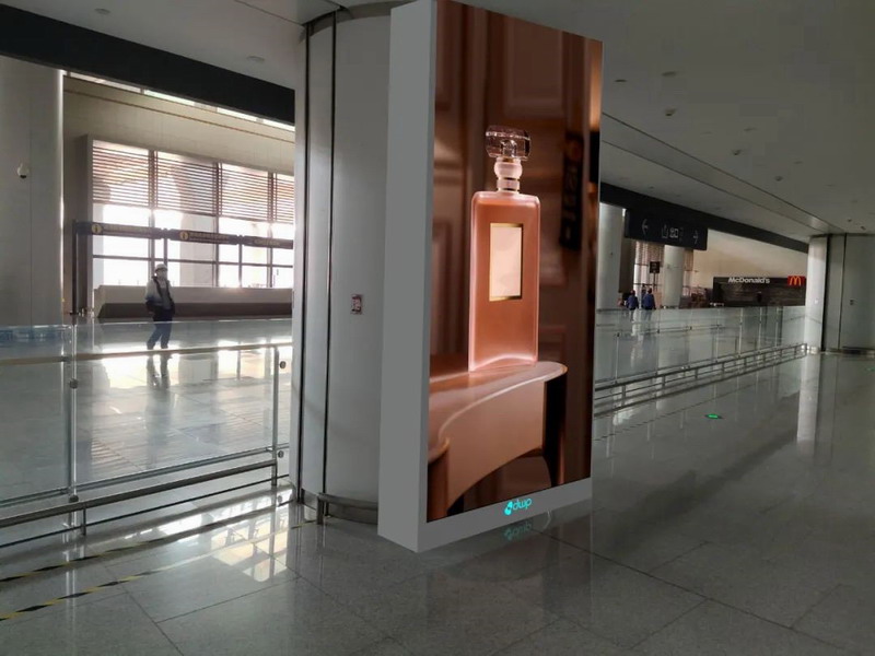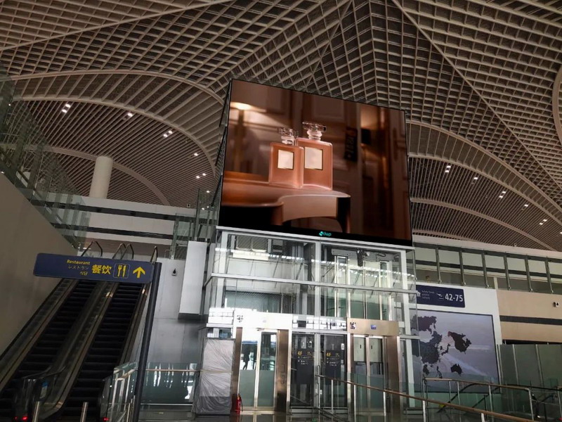 本次中標的范圍包括吊旗屏、柱狀屏、電梯井大屏、行李廳出口大屏等,產品主要采用CV系列和U系列,并應用了奧拓自主研發的圖像控制技術、逐點校正技術及24 bit顏色處理深度技術,可以獲得整屏亮度一致性和最精準的色彩還原,確保廣告播放效果。