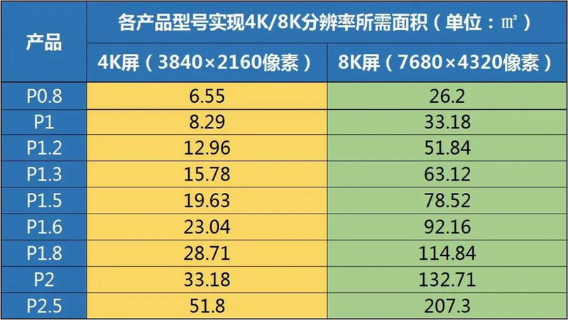 面積足夠大即可實(shí)現(xiàn)2K/4K/8K…超高清顯示