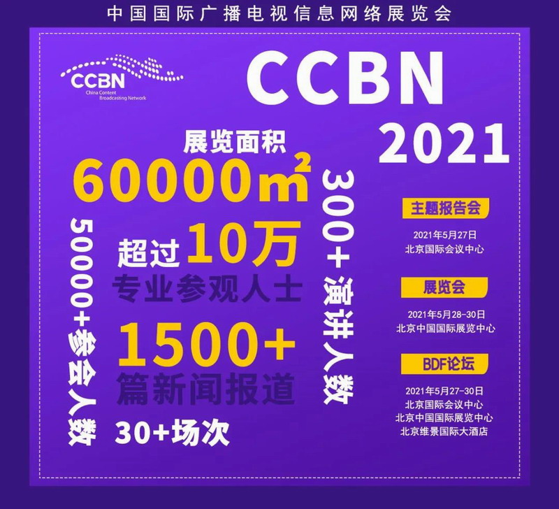 CCBN2021將有國內外近1000家企業和機構參展,覆蓋中國國際展覽中心12個展館和室外展場,展覽面積超過60,000㎡;展覽內容涵蓋廣播電視、網絡視聽、電影、信息化視聽、通信、IT、消費電子等多個領域,全面展示拍攝制作、傳輸覆蓋、運營管理、終端服務等各類視聽技術設備和創新應用,來自全國各級廣電局、廣播電視臺、廣電網絡運營商、通信運營商、網絡視聽平臺和相關部委、科研院所、高校以及傳媒、通信、IT等行業的專業參觀人士達100,000余人。展覽亮點包括:5G、智慧廣電、媒體融合、超高清/HDR、人工智能、云計算和大數據、虛擬現實(VR)、混合增強(MR)、縣級融媒體、影視制作、物聯網、智能化監測監管、信息安全、公共服務(直播衛星、地面電視、應急廣播)、區塊鏈、臺網全IP化制播、IPV6、網絡視聽、IPTV/OTT、智能終端系統、多屏融合、移動互聯網、光通信、數字版權保護、數字家庭與互動娛樂、信息化視聽集成等技術產品的最新發展。