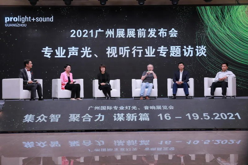 在專題訪談環(huán)節(jié),主辦單位代表廣東國(guó)際科技貿(mào)易展覽公司項(xiàng)目總監(jiān)馬靜女士聯(lián)袂廣東省舞臺(tái)美術(shù)研究會(huì)梁溪清會(huì)長(zhǎng)、恩平市電聲行業(yè)協(xié)會(huì)吳虹云會(huì)長(zhǎng)、廣州市保倫電子有限公司廣州營(yíng)銷總經(jīng)理鄭慶瑜女士、慧聰音響燈光網(wǎng)營(yíng)銷總監(jiān)侯獻(xiàn)威先生,圍繞專業(yè)聲光、視聽(tīng)行業(yè)目前的復(fù)蘇情況與發(fā)展機(jī)遇展開(kāi)專題訪談,分別從展會(huì)主辦單位、行業(yè)協(xié)會(huì)、行業(yè)媒體、參展企業(yè)的不同視角和領(lǐng)域,為后疫情時(shí)代燈光音響行業(yè)如何謀篇布局提供一些新思路、新啟示。在談及國(guó)內(nèi)聲光、視聽(tīng)行業(yè)今年的發(fā)展態(tài)勢(shì)時(shí),梁溪清會(huì)長(zhǎng)表示:文化和旅游部近日發(fā)文取消了對(duì)營(yíng)業(yè)性大型演出的紅線限制,有效提振了文化娛樂(lè)產(chǎn)業(yè)及各位藝術(shù)創(chuàng)作者的信心。今年正值建黨100周年,中共中央提出要多舉辦大型文藝演出、展覽等形式多樣的慶祝活動(dòng)、“百年百戲”優(yōu)秀劇目展演活動(dòng)等,各種文化創(chuàng)作需求的增加及紅色文旅項(xiàng)目發(fā)展勢(shì)頭強(qiáng)勁,將給行業(yè)帶來(lái)新的增長(zhǎng)點(diǎn)。吳虹云會(huì)長(zhǎng)指出:本屆廣州展恩平市電聲行業(yè)協(xié)會(huì)共組織了254家恩平企業(yè)參展,體現(xiàn)了恩平企業(yè)對(duì)廣州展的重視與肯定。通過(guò)政府、企業(yè)、展會(huì)三方聯(lián)動(dòng),設(shè)立的恩平電聲館,為恩平企業(yè)提供了高質(zhì)量的展示平臺(tái)。同時(shí),廣州展憑借其強(qiáng)大的全球網(wǎng)絡(luò),為以外貿(mào)為主的恩平企業(yè)帶來(lái)了穩(wěn)定的海外買家資源。