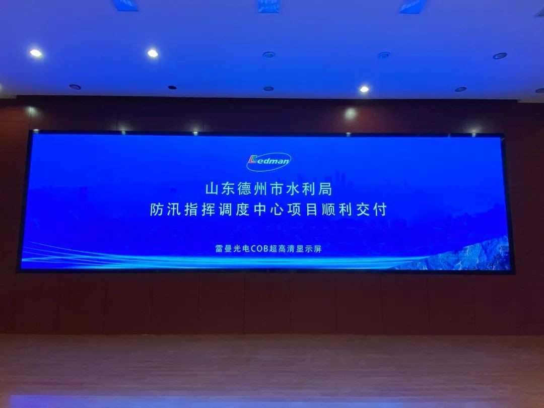 雷曼光電為德州市水利局打造的超高清顯示解決方案,以雷曼COB超高清顯示屏承載數(shù)據(jù)顯示及實(shí)時(shí)監(jiān)視任務(wù),助力水利工作者進(jìn)行音視頻工作溝通,其顯示效果、可靠性與穩(wěn)定性獲得客戶認(rèn)可與好評(píng)。