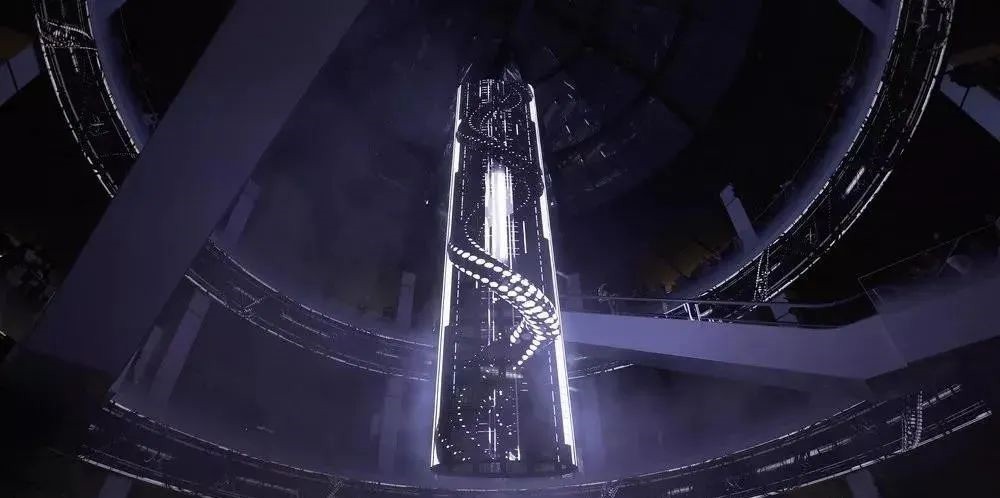 商城兩個圓環形的LED屏幕結合中心的360°圓柱形屏幕,把沉浸式的視覺效果演繹到極致。