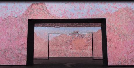 除了建筑上的樓體秀,沙盤背后的幕布也在緩緩傾訴故事: