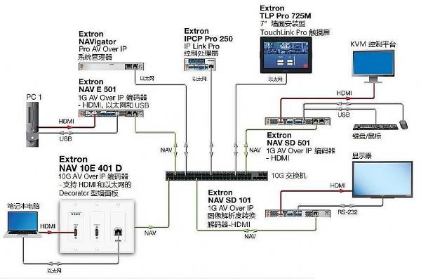 屢獲殊榮的 NAV® 系列是唯一支持 1G 和 10G 設(shè)備無縫互操作的一體化解決方案,有效提升了大規(guī)模系統(tǒng)部署的靈活性和可擴(kuò)展性。同時,它們還支持 IP 架構(gòu)的 AES67 音頻,進(jìn)而能夠與 Extron 廣闊的音頻 DSP 產(chǎn)品型號或其它具有 IP 功能的音頻組件集成。NAV 系統(tǒng)可以部署為基于 IP 架構(gòu)的高性能視音頻矩陣,這樣能夠讓 IP 系統(tǒng)的靈活性與傳統(tǒng)矩陣切換器所集成的友好切換特性“相得益彰”。為滿足專業(yè)視音頻環(huán)境內(nèi)嚴(yán)苛的應(yīng)用需求,Extron 可高度擴(kuò)展且功能強(qiáng)大的 NAV 平臺可實現(xiàn)數(shù)千個端點的視音頻信號安全部署。