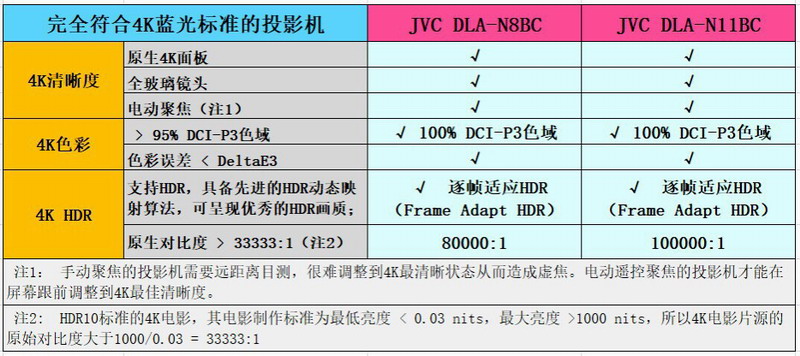 綜上所述,JVC N系列(N11、N8)是完整達到或超越4K藍光標準的家用投影機。