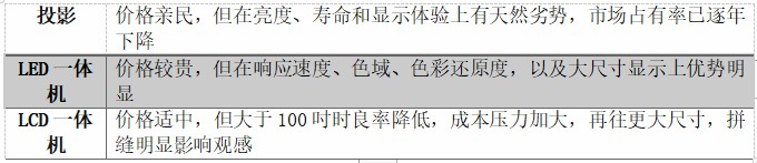 此外,值得一提的是,雖然目前 LED一體機(jī)的優(yōu)勢在100吋以上,但隨著Mini/Micro LED技術(shù)的不斷成熟和成本隨之下降,未來,LED會議一體機(jī)將有機(jī)會進(jìn)入110吋以下的會議場景,往82吋、75吋甚至更小尺寸發(fā)力。如若采用前文所提的像素間距0.4mm LED顯示屏,4K一體機(jī)可以下探到70吋,前景廣闊。