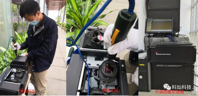 現場檢測,原圖像處理器、機芯光路和燈泡已出現故障,我司為此定制了一套高效可行并且成本投入極低的精細方案。