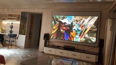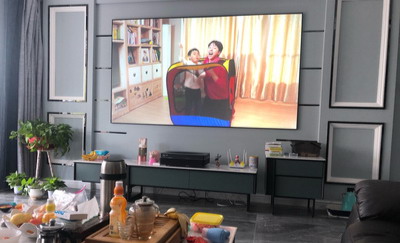 先是收到主機,自己在白墻上試了效果,就已經很不錯了,后面屏幕到了,快遞小哥幫忙送到家,安裝師傅安裝調試好后,這效果簡直了,和之前的小電視完全不是一個等級,大屏幕觀影心情都變好了,并且直接拉高客廳顏值,客服也專業,有問必答,之后會推薦給親朋好友的。