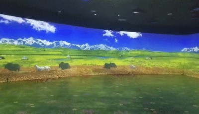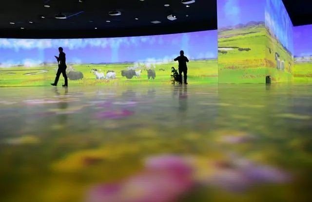 天蒼蒼,野茫茫,風(fēng)吹草低見牛羊,走進(jìn)沉浸投影展區(qū),滿眼的草原盛景讓參觀者驚嘆連連。大草原上牛羊成群,座座帳篷如明珠般鑲嵌在碧綠的草地上,純樸的民情,遼闊的草原。置身其境,讓人忘記城市的喧囂和繁雜,真正體會到大自然的博大與神奇。