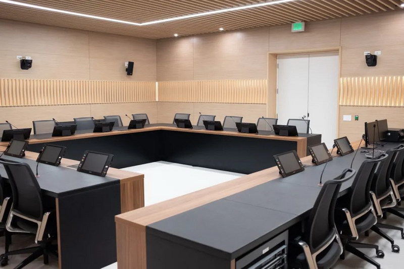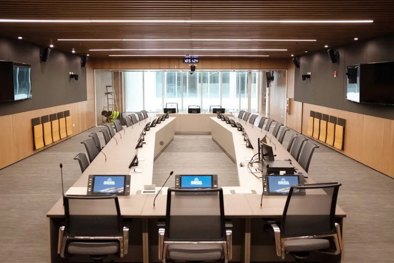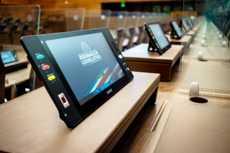 在立法大會日常工作中,會議系統設備起到的作用至關重要。討論、表決、簽到、文件閱看批注共享……這些功能一個都不能少,57位議員們的聲音都需要被清楚地聽到。為了實現這一目標,深圳臺電(TAIDEN)與當地代理商密切合作,為哥斯達黎加立法大會裝配了TAIDEN HCS-8668系列第四代無紙化會議系統,幫助議員們順利開啟每一場會議。