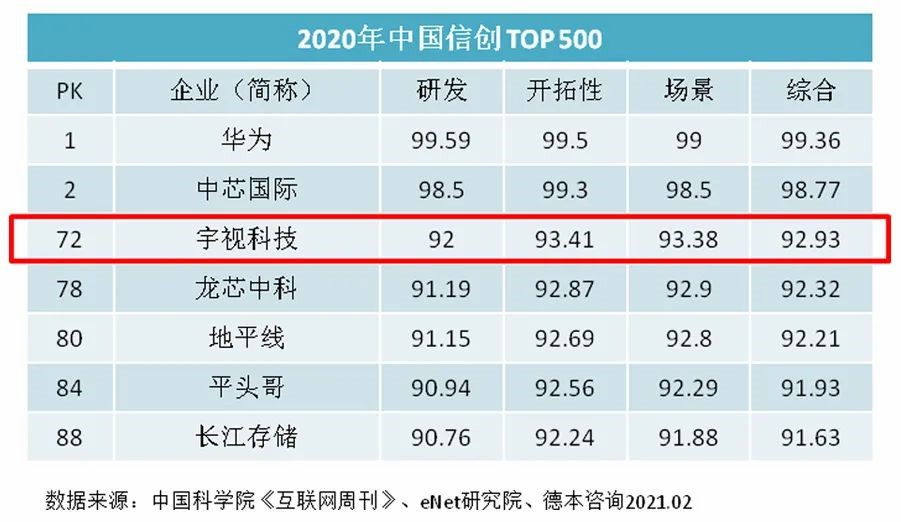 @宇視科技 宇視居中國信創500強第72位 破解卡脖子難題