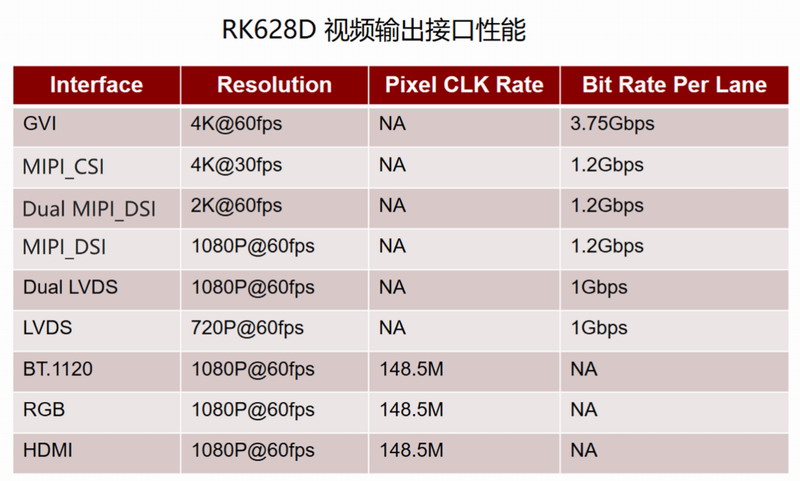 2)輸出接口支持:HDMI、GVI、MIPI_CSI、單/雙LVDS、單/雙MIPI_DSI、RGB、BT.1120