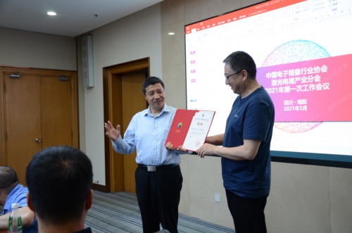 會中,為了肯定各成員單位對激光電視產(chǎn)業(yè)分會和行業(yè)健康發(fā)展做出的貢獻(xiàn),增進(jìn)會長和副會長單位的責(zé)任感和使命感,頒發(fā)了會長和副會長證書。激光電視產(chǎn)業(yè)的健康發(fā)展離不開各企業(yè)工作人員的努力,激光電視產(chǎn)業(yè)分會充分肯定了工作人員在市場推廣和標(biāo)準(zhǔn)化方面做出的貢獻(xiàn)。