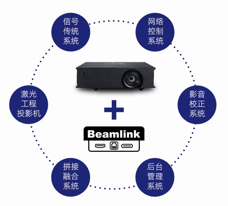 Beamlink智顯可謂是投影機的“大腦”,兼具信號傳輸系統和網絡控制系統。不做簡單粗暴的1+1硬件堆砌,“智顯”有效利用投影機內部空間,有機組合,互通互融 ,高度集成,減少不必要的物理鏈路,增強系統可靠性;客戶無需額外支付信號線路傳輸設備支出,凸顯高性價比。無需外部網絡控制設備,無需額外部署RS232控制線或網線,Beamlink智顯賦予了投影機更強的系統能力,可以方便實現顯示設備之間互通互控。