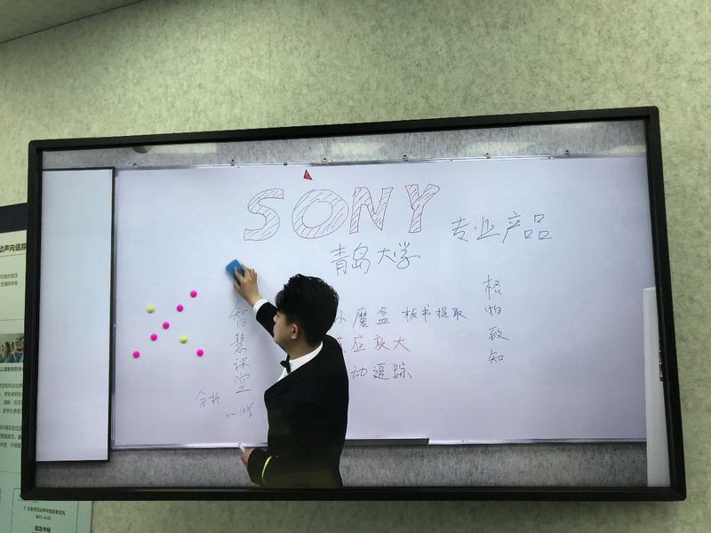 區別于傳統的智慧教室,索尼本次在搭建的真實的教室場景中更多的使用了搭配人工智能技術的產品來賦能整個教室環境,可以讓老師和學生獲得煥然一新的體驗,例如:索尼網絡攝像機和索尼增強分析單元(小魔盒)搭配,可以幫助學生無遮擋的看清楚老師的板書內容;索尼激光投影機和索尼商用顯示器帶給學生清晰、舒適、完整、長久的課件觀看體驗;索尼MAS-A100自動聲向追蹤麥克風幫助老師解放雙手,沒有束縛的在教師中實現語音增強體驗,在后疫情時代,降低病毒和細菌傳播的風險。