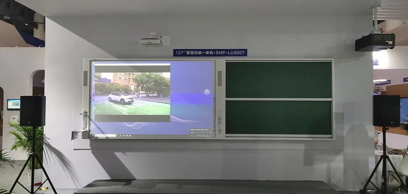 除護(hù)眼之外,127"白板一體機(jī)+SNP-LU500T解決方案多媒體功能也十分齊全,集電子白板、中控、電腦、功放音響、視頻展臺(tái)等多種設(shè)備于一體,一套設(shè)備可以滿足老師不同上課要求。